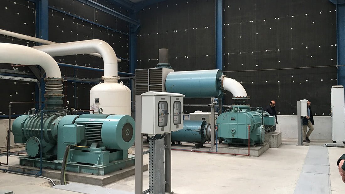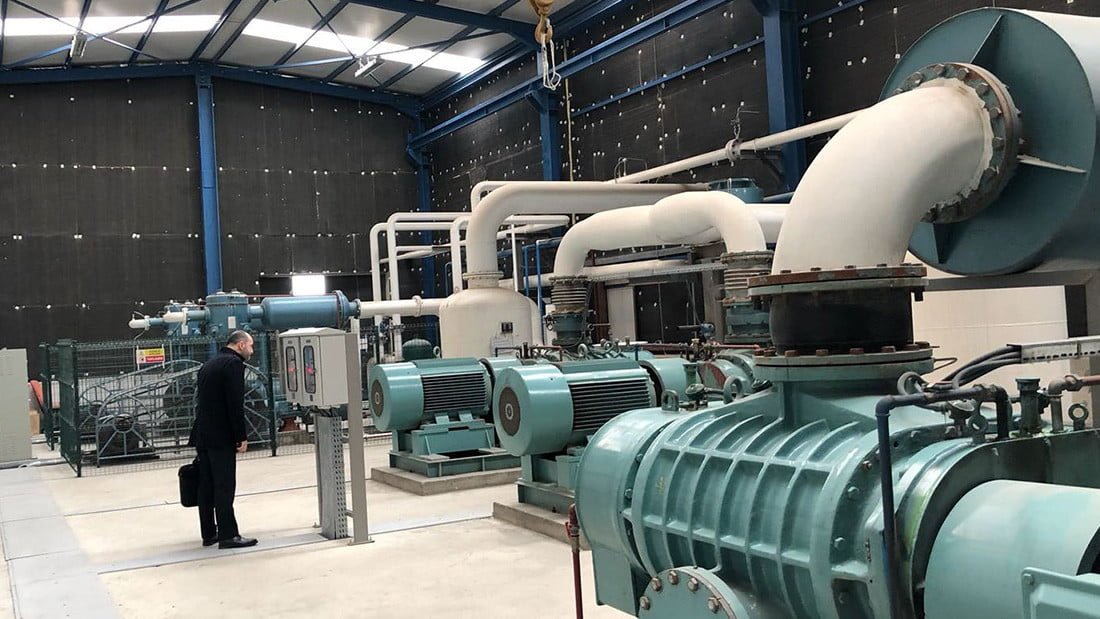 Корневая воздуходувка и вакуумный насос создают среду с низким давлением 0,49 кПа. В отличие от систем с компрессорами, самым большим преимуществом работы при низком давлении является низкое потребление энергии. Таким образом, оборудование системы не попадает в класс сосудов высокого давления и легко устанавливается на заводе.